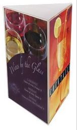Clear acrylic table tent, 6" x 4" insert size. Our 3 view, top-open tabletop stands are made of .080 clear acrylic.